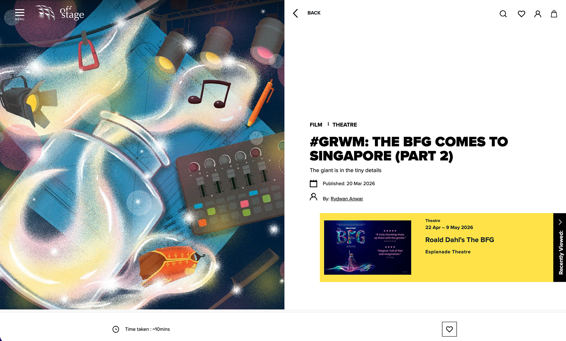 This project was created for Esplanade Offstage, in conjunction with the stage adaptation of The BFG. The goal was to develop a set of key visuals that reflect not just the story itself, but the process of bringing a large-scale theatre production to life.