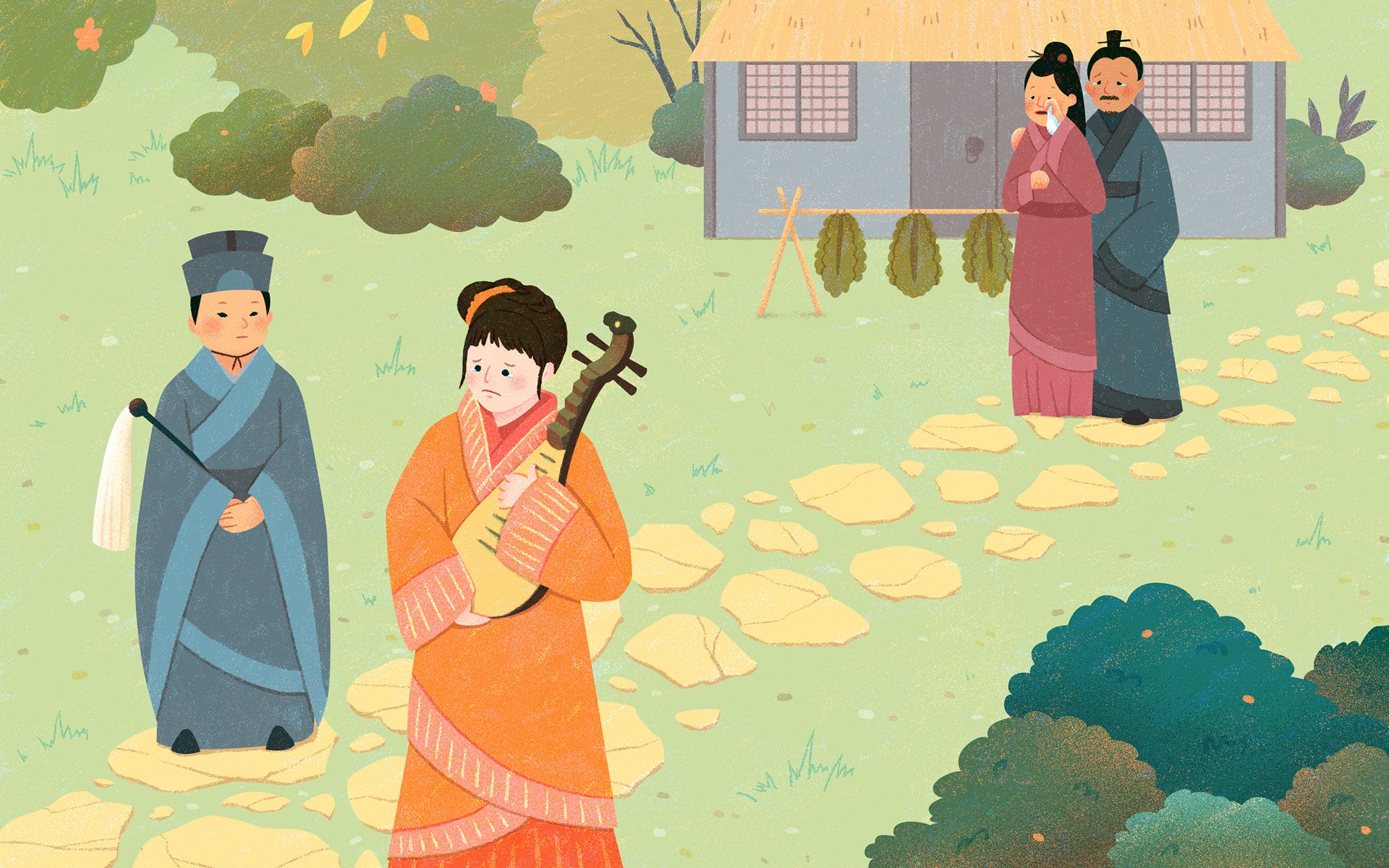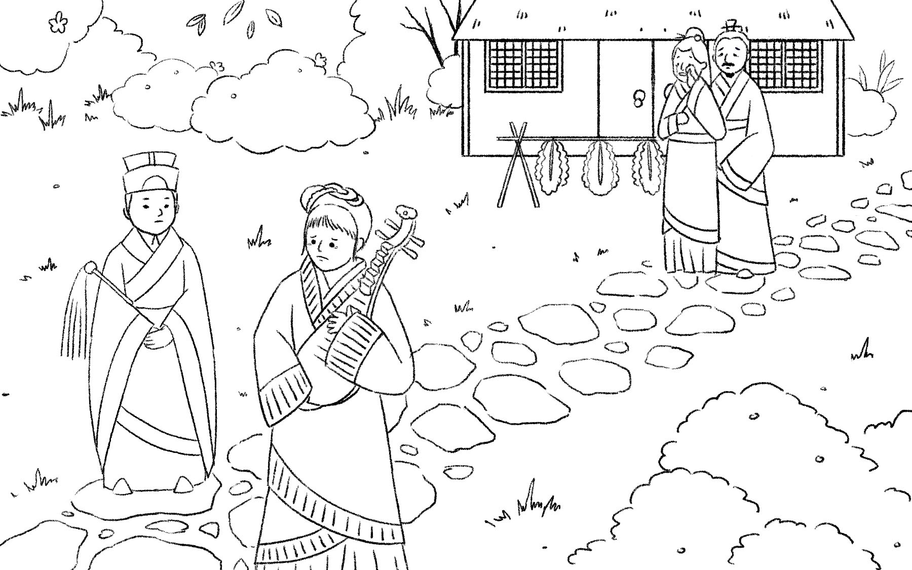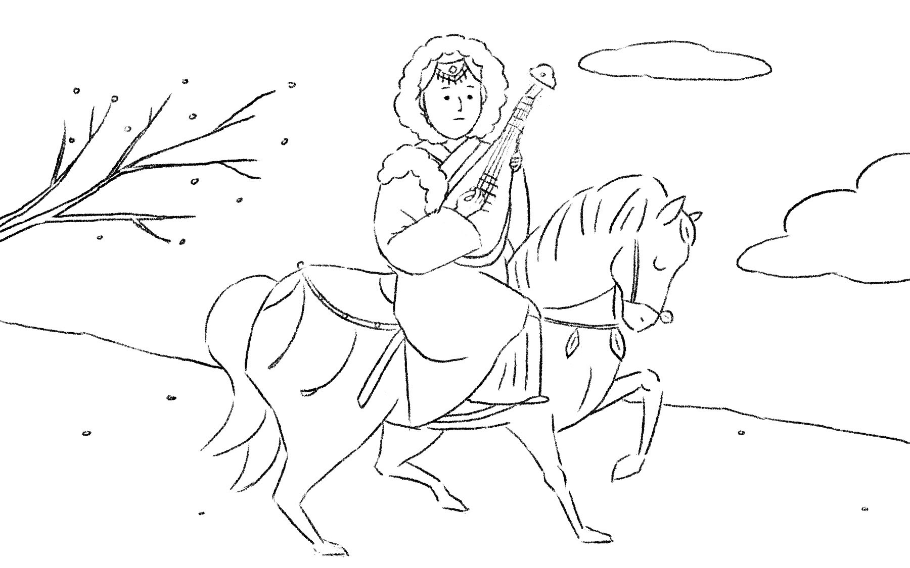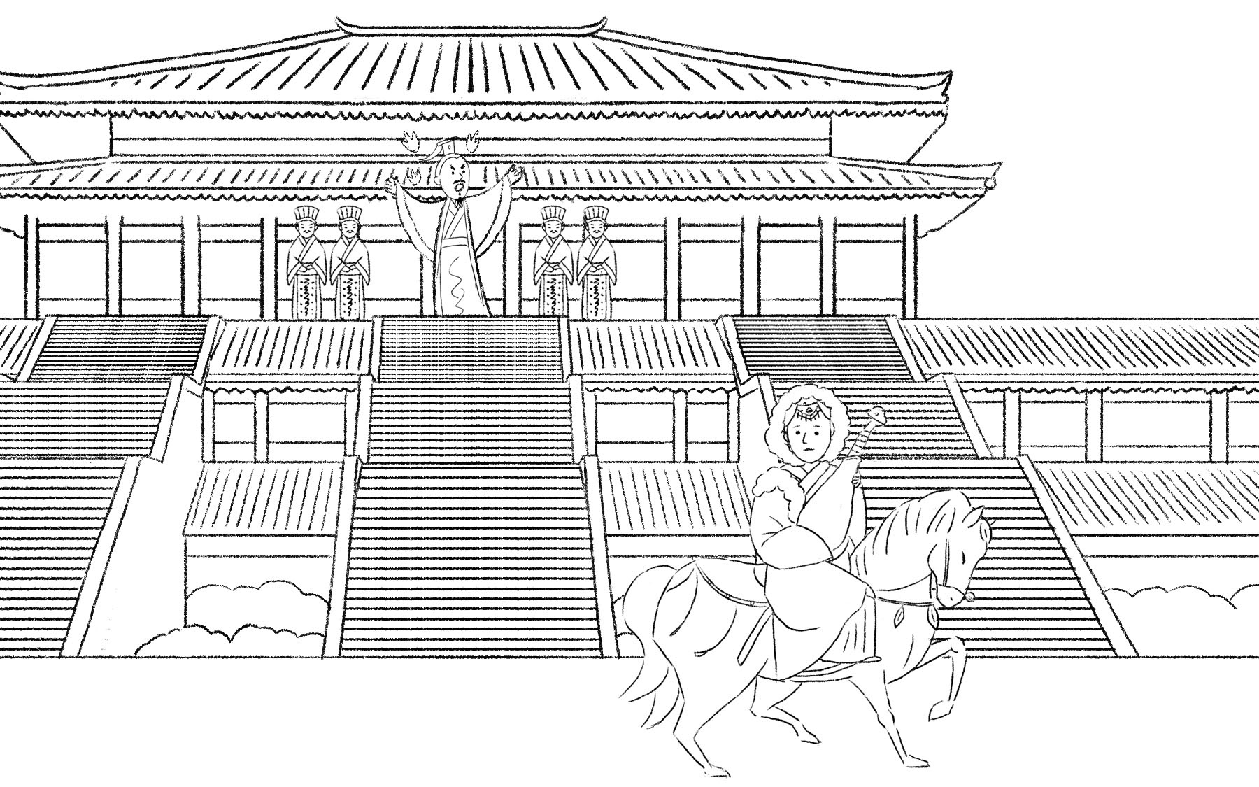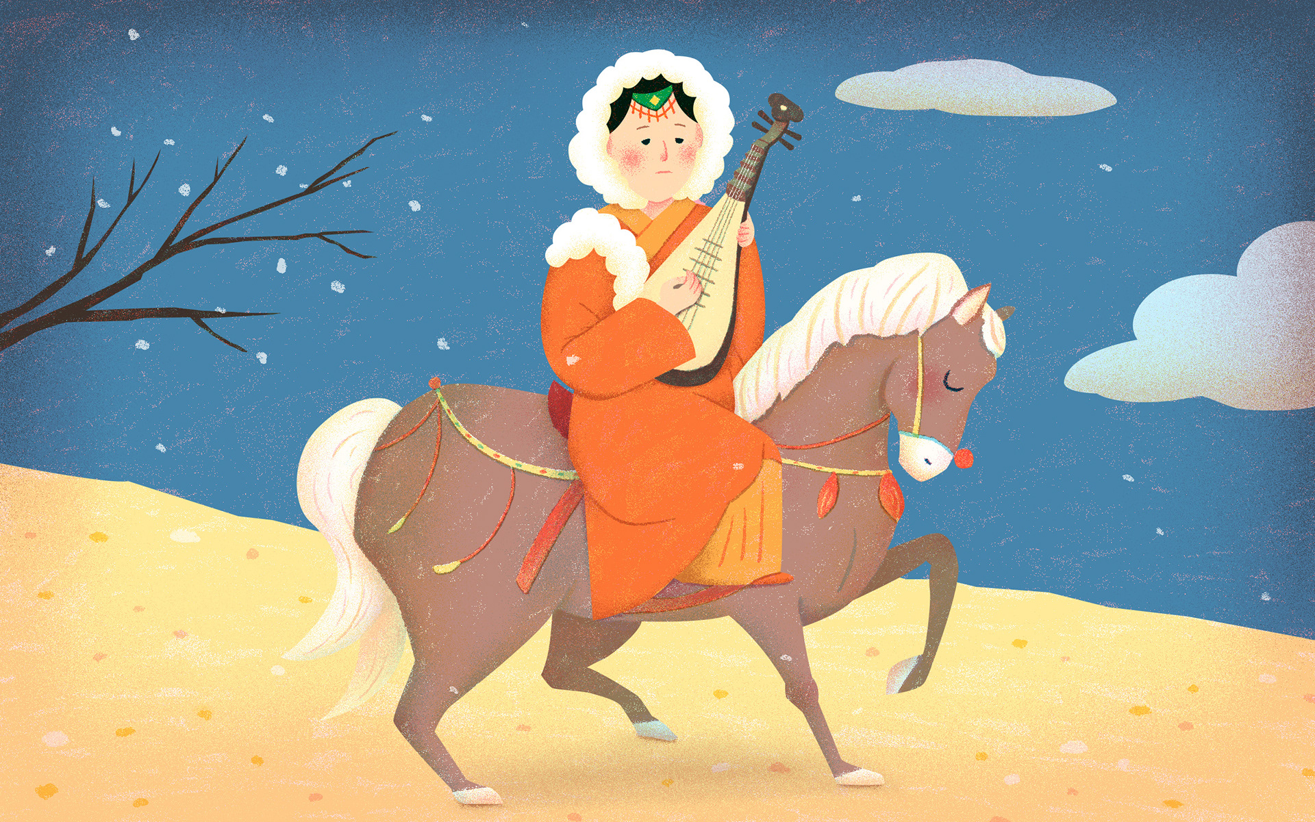 On a crisp autumn morning, Zhaojun set off on horseback to the Northern frontier. She was dressed in the palace’s finest clothing, but she could not feel any warmth. Cradled in her arms was a pipa, her most prized musical instrument, which had accompanied her through many lonely days in the palace.