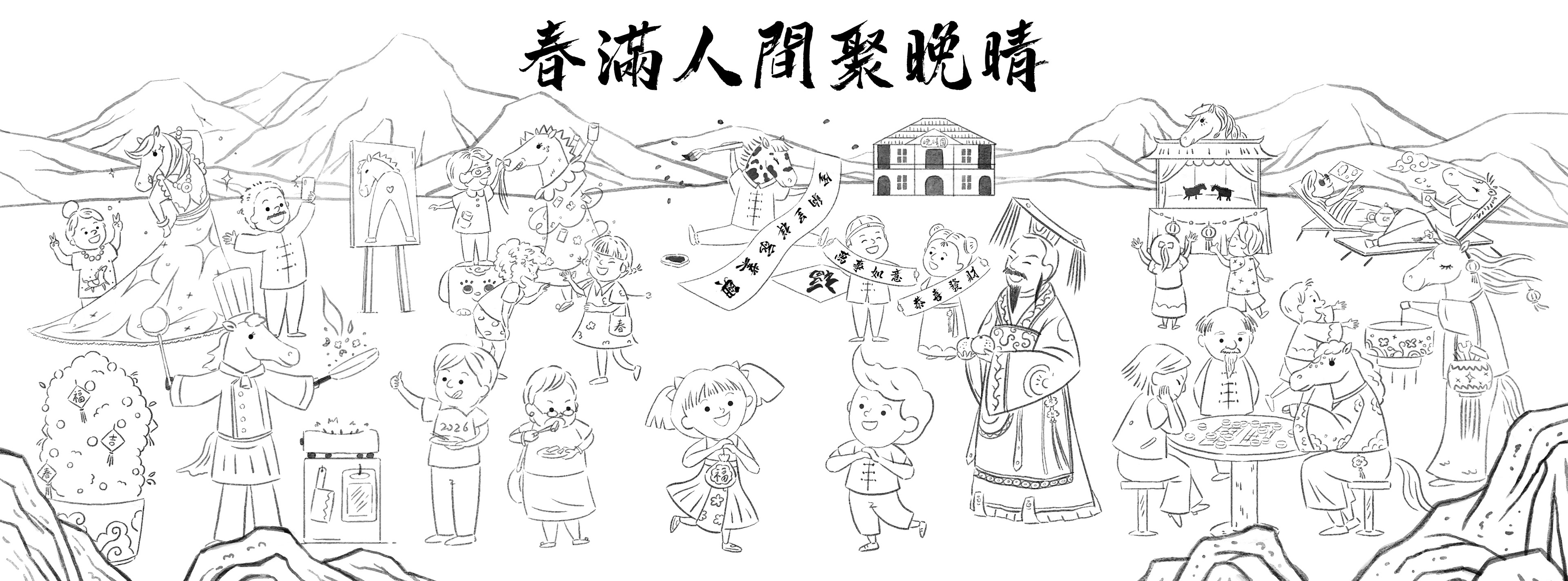 The final illustration expands this idea into a lively spring environment where different generations gather, participate, and interact. The composition is designed as a continuous visual journey, guiding the viewer through moments of performance, making, playing, and celebrating.