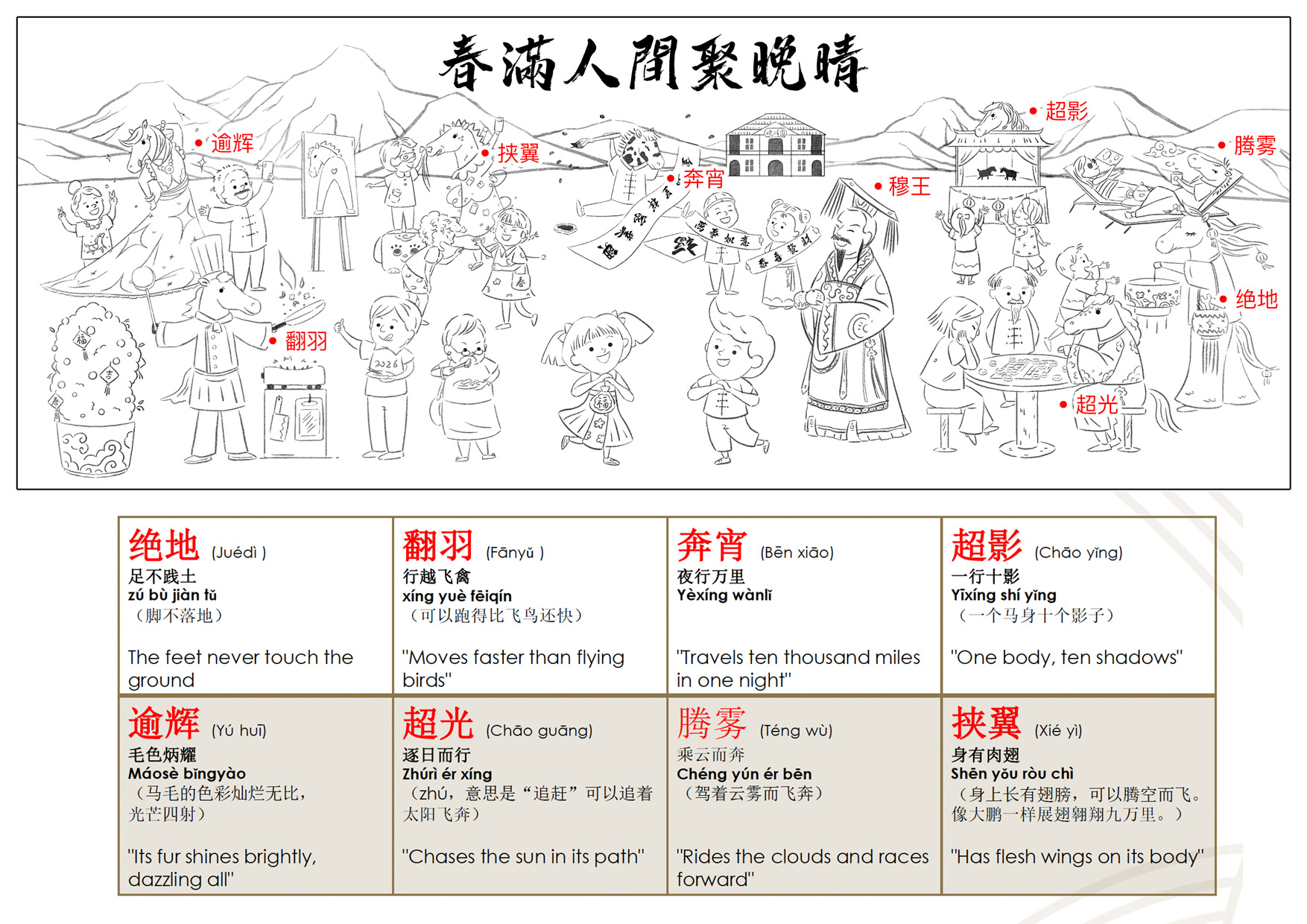 The concept is inspired by the legendary horses from The Eight Steeds of King Mu (穆王八骏), a classical Chinese motif that symbolizes movement, vitality, and the ability to travel across distant realms.